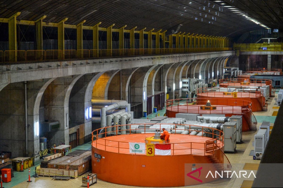 Operator pembangkit melakukan pemeriksaan di area generator PLTA Cirata di Kabupaten Purwakarta, Jawa Barat, Selasa (26/9/2023). PLTA Cirata yang memiliki delapan unit generator dengan total kapasitas 1.008 megawatt tersebut merupakan PLTA terbesar se-Indonesia serta menjadi tulang punggung energi bersih di Pulau Jawa, Madura, dan Bali. ANTARA FOTO/Raisan Al Farisi/agr