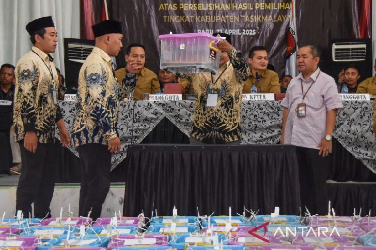 Ia mengungkapkan hasil rapat pleno terbuka rekapitulasi penghitungan perolehan suara di Gedung Ukhuwah Singaparna, Tasikmalaya berjalan dengan lancar, dan tuntas sesuai batas waktu yang ditetapkan Mahkamah Konstitusi (MK) selama 60 hari atau sampai 24 April 2025.