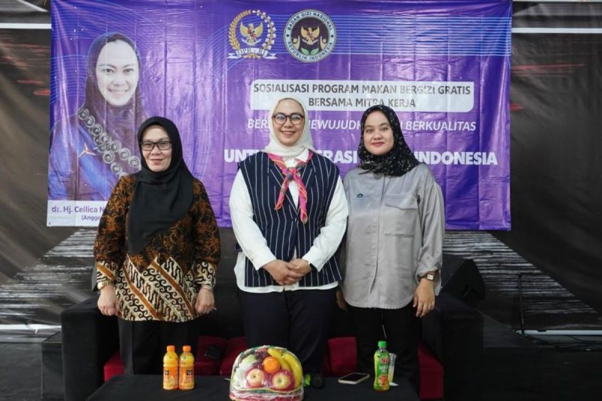 Acara sosialisasi program MBG dihadiri oleh Anggota Komisi IX DPR RI Cellica Nurachadianna, Tenaga Ahli kepala BGN Fatimah Zahra, dan Dinkes Kabupaten Bekasi Rita Permatasari.
