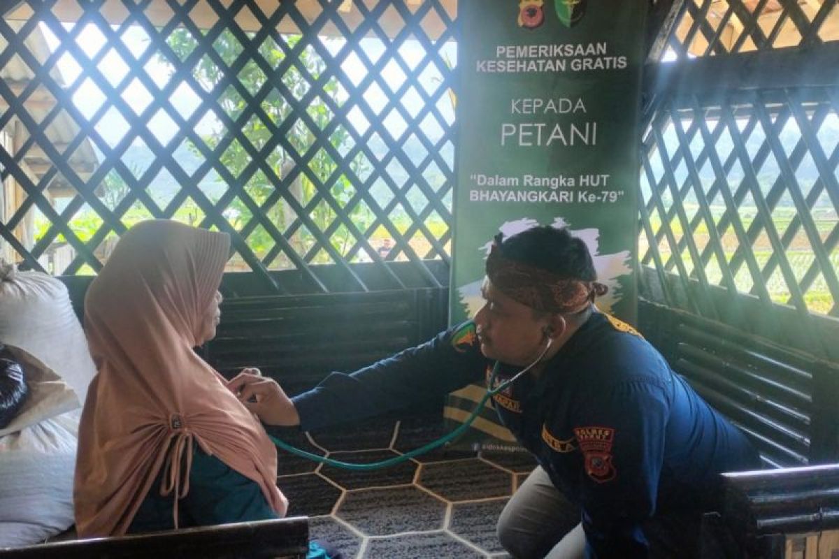 Kepolisian Resor Garut menerjunkan tim kedokteran dan kesehatan (Dokkes) untuk membuka posko pelayanan kesehatan gratis dengan sasaran petani untuk memastikan pekerja ketahanan pangan itu dalam kondisi sehat di Kecamatan Cilawu, Kabupaten Garut, Jawa Barat, Senin.