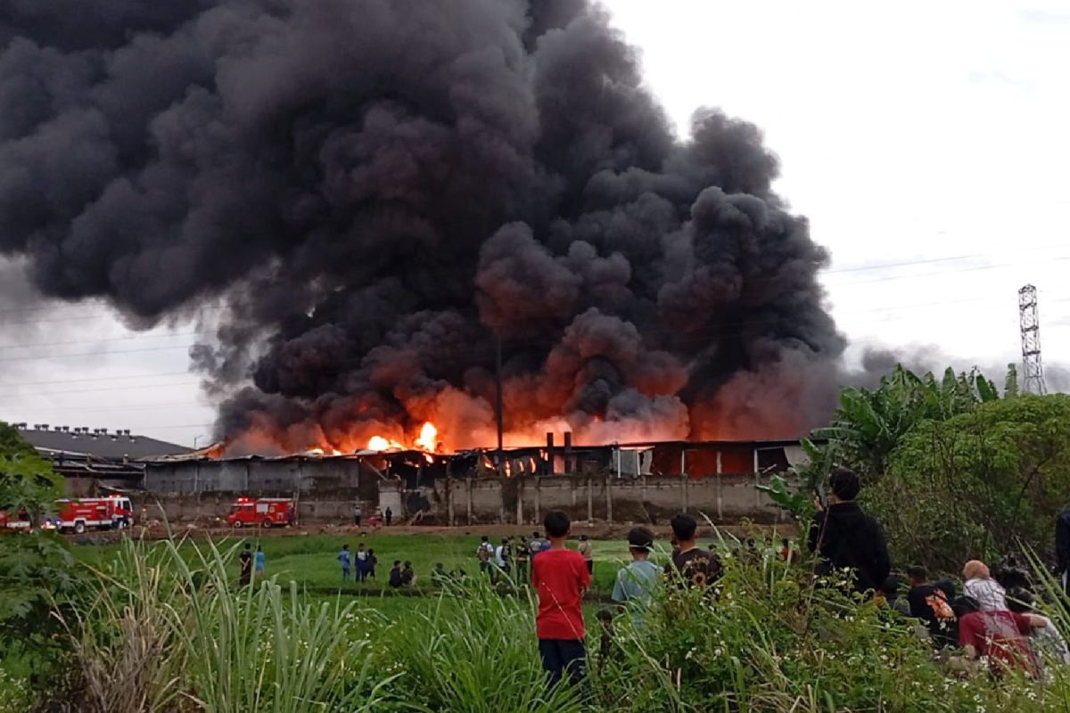 Kebakaran menghanguskan sebuah pabrik plastik di kawasan industri Cibolerang, Kelurahan Margasuka, Kecamatan Babakan Ciparay, Kota Bandung, Jumat sore.