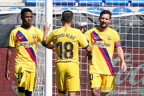 Megabintang Lionel Messi mengemas dua gol, sedangkan Ansu Fati, Luis Suarez dan Nelson Semedo masing-masing satu gol, demikian catatan laman resmi Liga Spanyol.