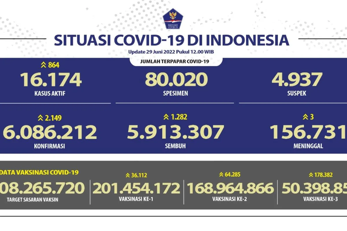 Sementara itu, terdapat 201.454.172 orang yang sudah menjalani vaksinasi pertama untuk vaksin COVID-19. Jumlah itu memperlihatkan kenaikan 36.112 orang dibandingkan Selasa kemarin (28/6).