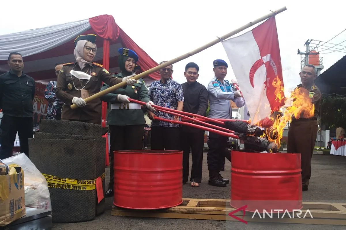 Selanjutnya barang bukti lain, termasuk atribut organisasi NII dimusnahkan dengan cara dibakar.