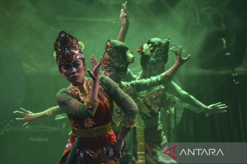 Peserta mementaskan tarian tradisional di Gedung Kesenian Kota Tasikmalaya, Jawa Barat, Kamis (13/10/2022). Pementasan kesenian dan kebudayaan tradisional yang diikuti 59 peserta dalam rangka memperingati HUT ke-21 Kota Tasikmalaya. ANTARA FOTO/Adeng Bustomi/agr
