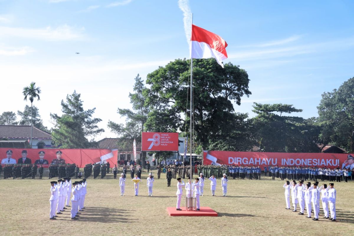 Bertindak selaku komandan upacara pada peringatan HUT Kemerdekaan RI ke 78 tersebut, Mayor Arm. Muriadi., S.IP, pembaca naskah Proklamasi Ketua DPRD Kota Cimahi, Achmad Zulkarnain. pembaca naskah Pancasila Dandim 0609, Letkol. Arm. Boby, dan pembaca naskah pembukaan UUD 1945 oleh Kapolres Cimahi AKBP Aldi Subartono. (ADVERTORIAL)