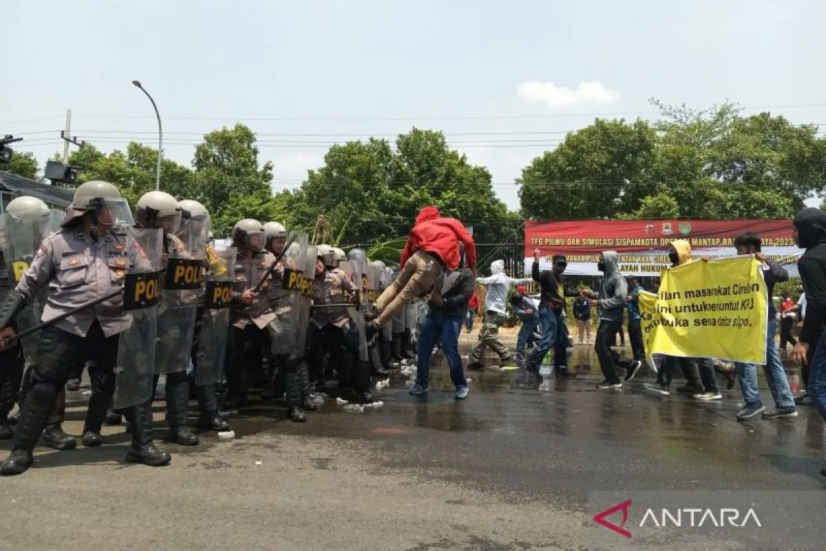 Kepolisian Resor Kota Cirebon, Jawa Barat, menggelar simulasi penanganan kontingensi dalam rangka melatih para personel mengamankan jalannya pesta demokrasi Pemilihan Kepala Desa Serentak 2023 dan Pemilu 2024.