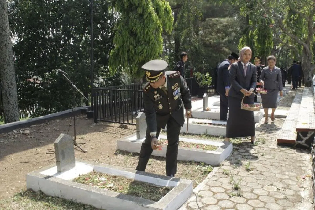 Komando Distrik Militer (Kodim) 0615/Kuningan melaksanakan upacara ziarah nasional di Taman Makam Pahlawan (TMP) Haurduni Kuningan, Jawa Barat, untuk memberi penghormatan dan mengenang jasa-jasa pahlawan yang sudah berjuang demi kemerdekaan Republik Indonesia.