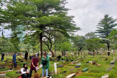 Jakarta (ANTARA) - Hijau teduh rumput kuburan, rendah perdu pepohonan, kilau hitam batu nisan dan warna-warni pakaian para peziarah terlihat sejauh mata memandang di area Tempat Pemakaman Umum (TPU) Karet Pasar Baru Barat, Jakarta Pusat siang itu.
