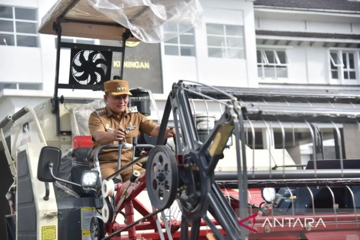 Bupati Kuningan Dian Rachmat Yanuar di Kuningan, Senin, mengatakan alsintan yang disalurkan terdiri atas tiga unit traktor roda empat, lima unit hand traktor roda dua, 50 unit pompa air, satu unit mesin panen (combine harvester besar), serta empat unit hand traktor roda tiga rotary.