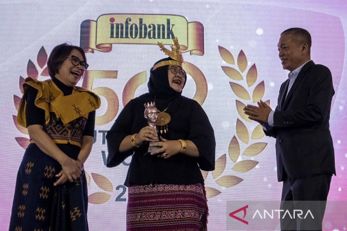 Direktur Keuangan dan Manajemen Risiko Perum LKBN Antara Nina Kurnia Dewi (tengah) berbincang dengan Komisaris Utama Infobank Evita Sumajouw (kiri) dan Direktur Utama Infobank Eko B Supriyanto (kanan) usai menerima penghargaan pada acara Infobank The Most 500 Outstanding Women 2025 di Mason Pine Hotel, Padalarang, Kabupaten Bandung Barat, Jawa Barat, Jumat (4/7/2025). Dalam acara tersebut Nina Kurnia Dewi menerima penghargaan Infobank The Most 500 Outstanding Women 2025 In Financial Sector & State Owned Enterprise. ANTARA FOTO/Abdan Syakura/agr