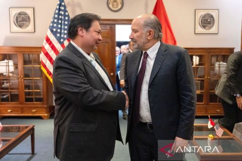 Ilustrasi - Menko Perekonomian Airlangga Hartarto (kiri) bertemu dengan Menteri Perdagangan AS Howard Lutnick (kanan) untuk membahas kelanjutan negosisasi kebijakan tarif resiprokal AS di Washington D.C., Amerika Serikat, Kamis (10/7/2025). (ANTARA/HO-Kemenko Perekonomian)