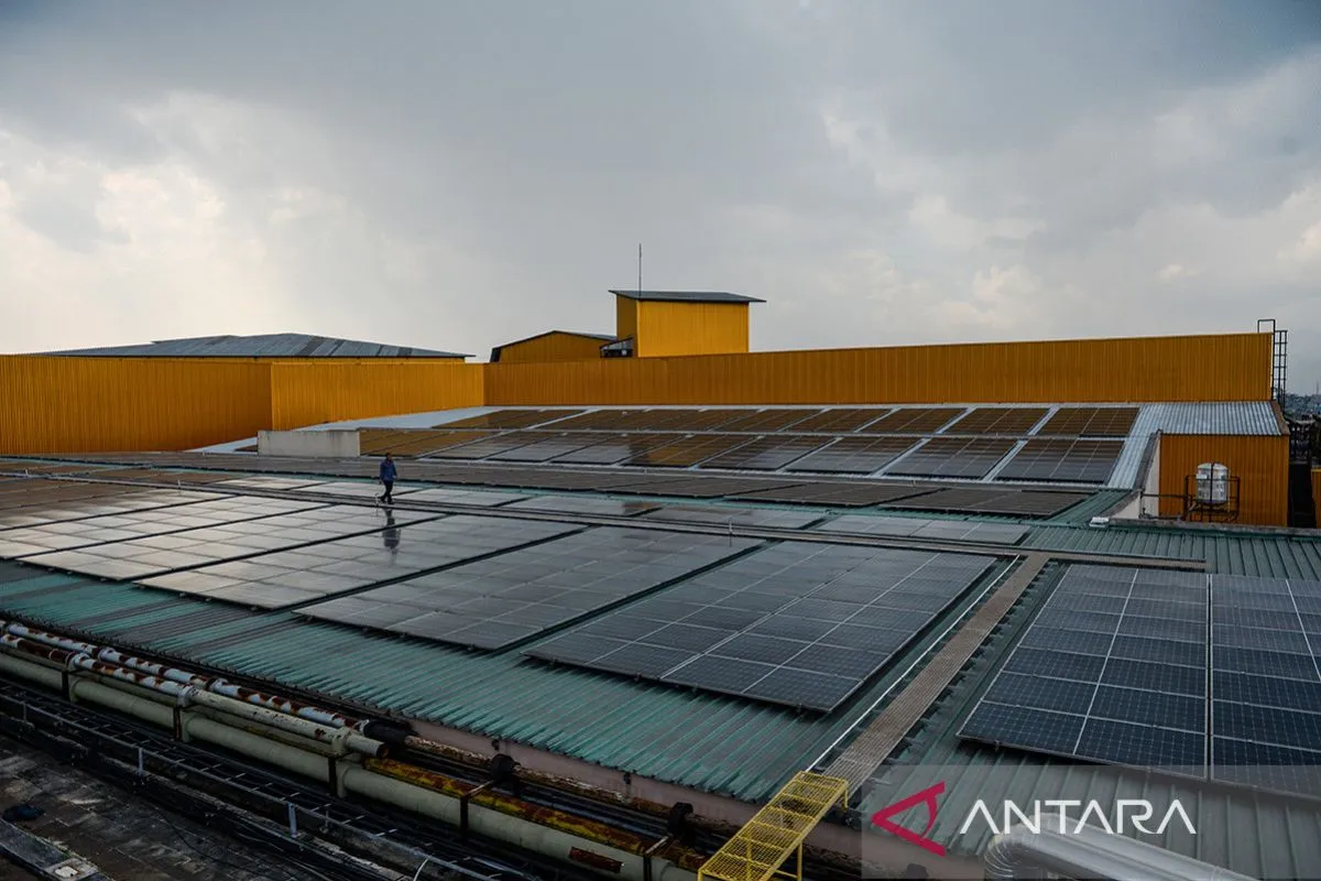 Petugas melakukan pemeriksaan di pembangkit listrik tenaga surya (PLTS) di Atap Trans Studio Mall, Bandung, Jawa Barat, Senin (8/9/2025). Kementerian Energi dan Sumber Daya Mineral (ESDM) mencatat kapasitas terpasang PLTS atap per Juli 2025 telah mencapai 538 MWp tersebar di 10.882 pelanggan PLN. ANTARA FOTO/Raisan Al Farisi/agr