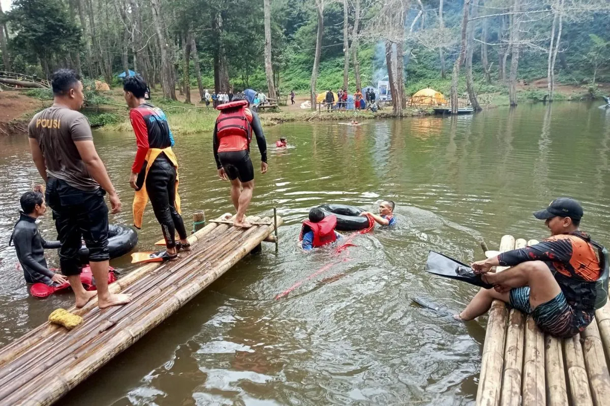 Garut (ANTARA) - Tim Search And Rescue (SAR) gabungan berhasil mengevakuasi seorang wisatawan dalam kondisi tewas karena tenggelam saat berupaya menyelamatkan dua remaja di kawasan objek wisata Danau Situ Salawe, Kecamatan Malangbong, Kabupaten Garut, Jawa Barat, Minggu.