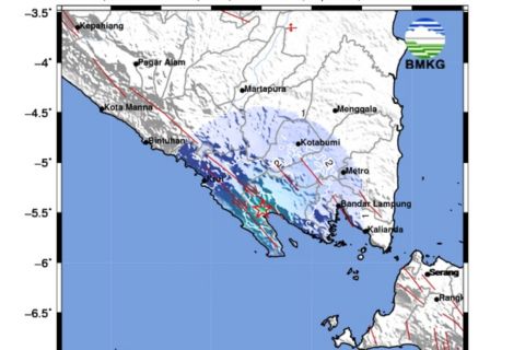 Episenter gempa bumi terletak pada koordinat 5,47 derajat Lintang Selatan (LS) dan 104,51 derajat Bujur Timur (BT).