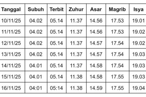 Berdasarkan data yang dirilis pada laman resmi Bimas Islam, berikut jadwal sholat di Bandung selama sepekan, mulai 10 hingga 16 November 2025.