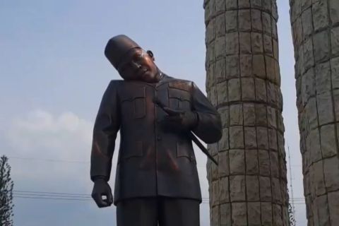 Bandung (ANTARA) - Pemerintah Kabupaten Indramayu, Jawa Barat, tengah memperbaiki patung Presiden pertama RI Soekarno yang mengalami kerusakan setelah tertimpa tenda acara di kawasan Alun-alun Indramayu pada awal November 2025.
