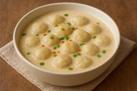 Cireng kuah creamy menggabungkan tekstur kenyal cireng isi ayam dengan cita rasa gurih lembut dari susu dan bumbu rempah. Bahkan, jika suka pedas, bisa tambahkan pedas pelangkap seperti chili oil.