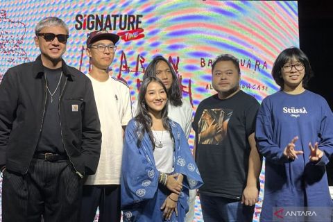 Grup band Barasuara akan gelar tur musik album showcase “Jalaran Sadrah” di lima kota Indonesia, dalam konferensi pers di Jakarta, Selasa (14/10/2025). (ANTARA/Sri Dewi Larasati)
