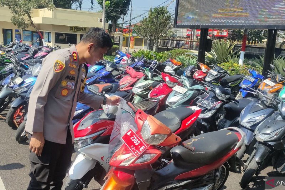 Kapolres Cianjur AKBP Alexander Yurikho Hadi di Cianjur, Selasa, mengatakan puluhan sepeda motor yang terjaring dalam razia tersebut di parkir halaman Polres Cianjur dengan bagian ban depan dirantai.