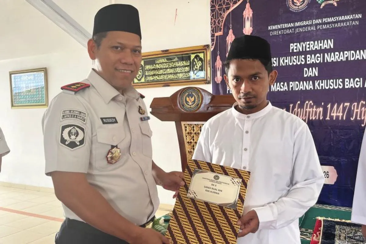 Garut (ANTARA) - Sebanyak 452 warga binaan Lembaga Pemasyarakatan (Lapas) Kelas IIA Kabupaten Garut, Jawa Barat, mendapatkan remisi Hari Raya Lebaran mulai dari 15 hari sampai dua bulan, dan dua orang langsung bebas yang diberikan bertepatan dengan Hari Raya Idul Fitri 1447 Hijriah di Garut, Sabtu.