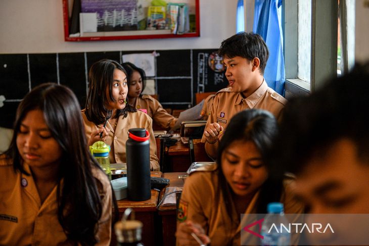 Siswa memakan makan bergizi gratis (MBG) di SMAN 20 Bandung, Jawa Barat, Senin (14/4/2025). Kepala Badan Gizi Nasional (BGN) Dadan Hindayana mengatakan pada akhir 2025 program MBG ditargetkan sudah tersalurkan bagi 82,9 juta penerima manfaat serta BGN bakal menyerap anggaran Rp 1 triliun per hari pada November untuk memenuhi target tersebut. ANTARA FOTO/Raisan Al Farisi/agr