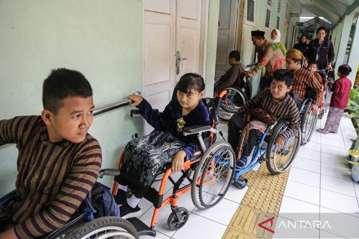 Siswa penyandang disabilitas mengenakan pakaian adat tradisional saat mengikuti acara Semarak Hari Kartini di SLB Negeri Semarang, Jawa Tengah, Senin (21/4/2025). Kegiatan yang diikuti para guru dan ratusan siswa berkebutuhan khusus dengan mengenakan busana tradisional dari berbagai macam suku adat daerah khas Indonesia tersebut bertujuan untuk mengenalkan dan melestarikan wastra budaya nusantara kepada generasi muda sekaligus memperingati Hari Kartini. ANTARA FOTO/Makna Zaezar/agr