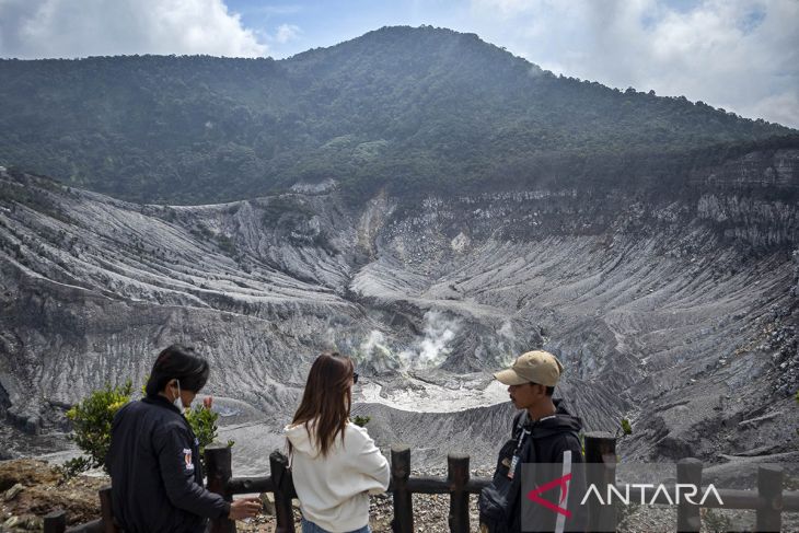 Wisatawan berada di dekat Kawah Ratu Gunung Tangkuban Parahu di Kabupaten Subang, Jawa Barat, Selasa (3/6/2025). Berdasarkan pemantauan Badan Geologi Kementerian Energi dan Sumber Daya Mineral (ESDM) pada periode 30 Mei hingga 2 Juni 2025 tercatat adanya peningkatan aktivitas vulkanik Gunung Tangkuban Parahu berupa 21-37 kejadian gempa hembusan serta 134 kejadian gempa frekuensi rendah, sementara status aktivitas gunung tersebut masih berada pada Level I atau Normal. ANTARA FOTO/Abdan Syakura/agr