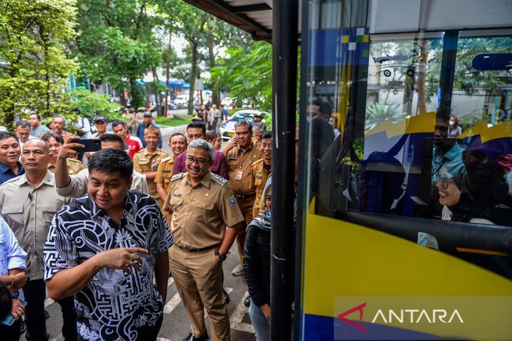 Menteri Perumahan dan Kawasan Permukiman (PKP) Maruarar Sirait (kedua kiri) bersama Wali Kota Bandung Muhammad Farhan (ketiga kiri) meninjau pelayanan publik di Bandung, Jawa Barat, Selasa (3/6/2025). Dalam kunjungannya di Kota Bandung Menteri PKP meninjau pelayanan persetujuan bangunan bagi masyarakat berpenghasilan rendah serta meresmikan anjungan Smile Connected yang ditujukan untuk memudahkan akses masyarakat untuk perizinan. ANTARA FOTO/Raisan Al Farisi/agr