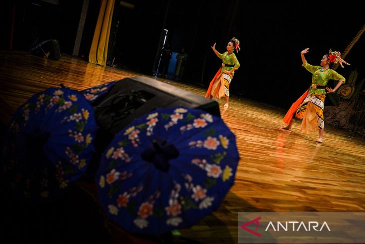 Penari membawakan tarian Geboy Kembang Kilaras dari Karawang pada acara Bandung Art Festival ke-11 di Taman Budaya Jawa Barat, Bandung, Jawa Barat, Sabtu (26/7/2025). Kegiatan bertajuk Jejak Budaya Dalam Jelajah Limbah tersebut diikuti oleh 1.000 seniman lintas disiplin dari dalam dan luar negeri sebagai ajang silaturahim budaya dengan proses yang mencerminkan interaksi harmonis dan saling menghormati antarindividu atau kelompok yang berasal dari berbagai latar belakang disiplin ilmu dan budaya. ANTARA FOTO/Raisan Al Farisi/agr