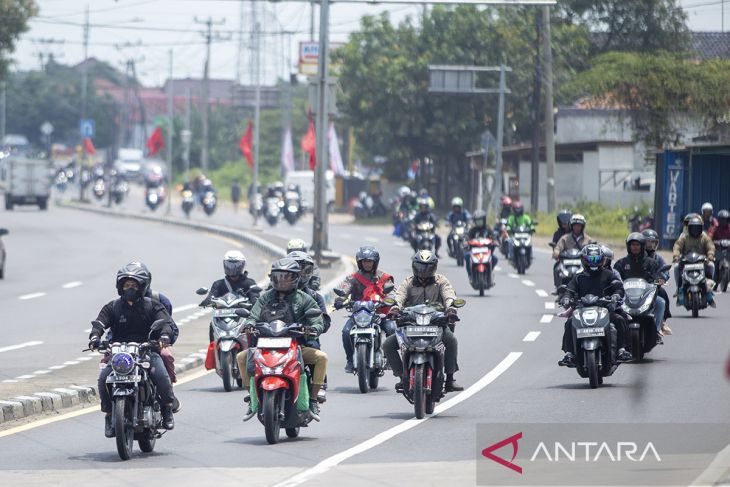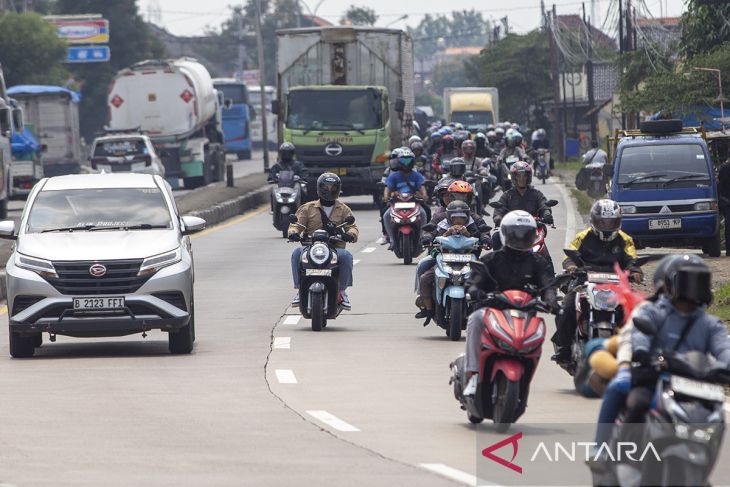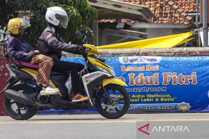Pemudik bersepeda motor melintas di jalur Pantura Losarang, Indramayu, Jawa Barat, Rabu (18/3/2026). Memasuki H-3 Lebaran, arus mudik di jalur Pantura terpantau ramai dan didominasi kendaraan roda dua. Berdasarkan data Dinas Perhubungan Jawa Barat,dari tanggal 13 hingga 18 Maret 2026 sebanyak 294.935 kendaraan roda dua dari arah Jakarta menuju Jawa Tengah telah melintas di jalur Pantura. ANTARA FOTO/Dedi Suwidiantoro/agr