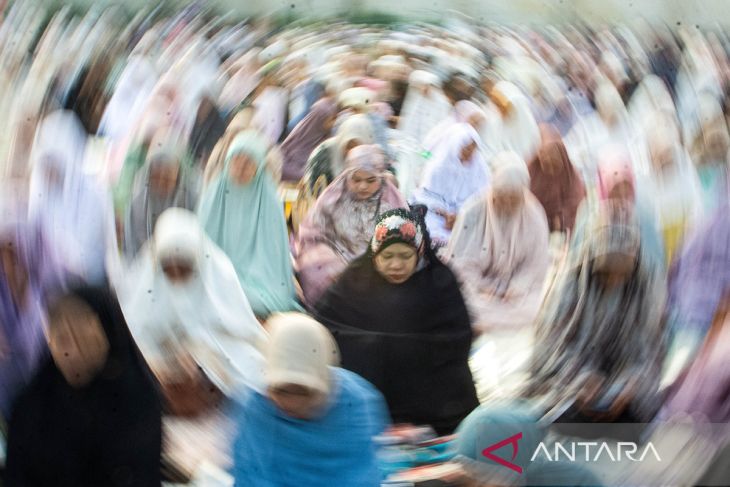 Umat islam melaksanakan shalat Idul Fitri 1447 Hijriah di Lapangan Lodaya, Bandung, Jawa Barat, Jumat (20/3/2026). Sebanyak 4000 umat muslim di Kota Bandung melaksanakan shalat Idul Fitri 1447 Hijriah sesuai penetapan Pimpinan Pusat Muhammadiyah yang lebih dulu sehari dari ketetapan Pemerintah yang jatuh pada Sabtu (21/3). ANTARA FOTO/Novrian Arbi/agr