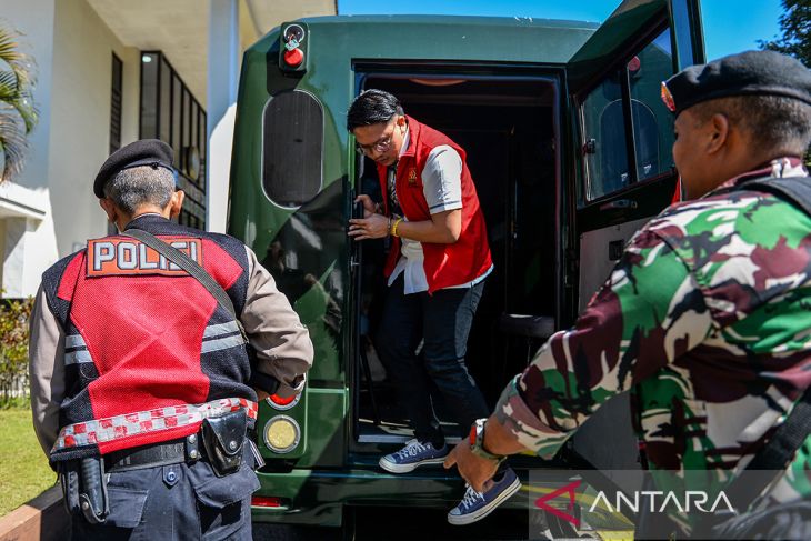 Terdakwa dugaan kasus penghinaan terhadap Suku Sunda Muhammad Adimas Firdaus Putra Nasihan alias Resbob turun dari kendaraan tahanan untuk menjalani sidang di Pengadilan Negeri Bandung, Jawa Barat, Senin (13/4/2026). Dalam sidang tersebut Jaksa penuntut umum menuntut Resbob dua tahun enam bulan penjara. ANTARA FOTO/Raisan Al Farisi/agr