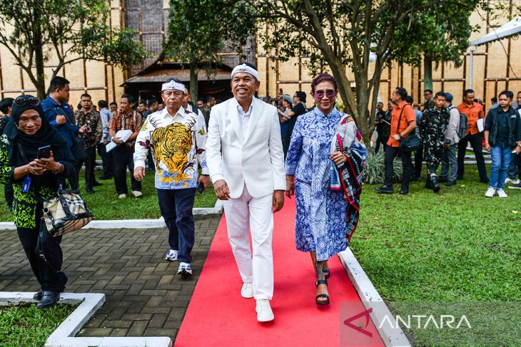Gubernur Jawa Barat Dedi Mulyadi (tengah) bersama Komisaris Utama Independen Bank BJB Susi Pudjiastuti (kanan), dan Sekda Jawa Barat Herman Suryatman (kiri) berjalan keluar ruangan usai Rapat Umum Pemegang Saham Tahunan (RUPST) Tahun Buku 2025 di Gedung Pakuan, Bandung, Jawa Barat, Selasa (28/4/2026). RUPST Tahun Buku 2025 Bank BJB menetapkan Susi Pudjiastuti sebagai Komisaris Utama Independen dan Ayi Subarna sebagai Direktur Utama, serta membagikan dividen sebesar Rp900 miliar kepada para pemegang saham. ANTARA FOTO/Raisan Al Farisi/agr