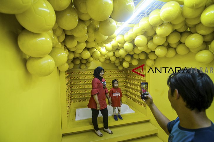 Wisatawan bermain mandi bola di wana wisata selfie Centrum Million Balls, Bandung, Jawa Barat, Sabtu (29/12/2018). Pengurus wisata Centrum Million Balls mengatakan pada liburan Natal dan Tahun Baru 2019, wisatawan yang mengunjungi wisata tersebut melonjak hingga 75 persen dibandingkan dari hari biasa. ANTARA JABAR/Raisan Al Farisi/agr.